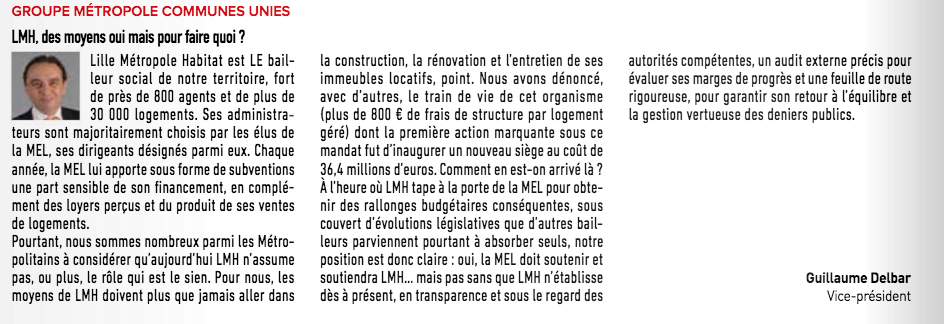 Tribune de Guillaume Delbar parue dans MEL 20, octobre 2018