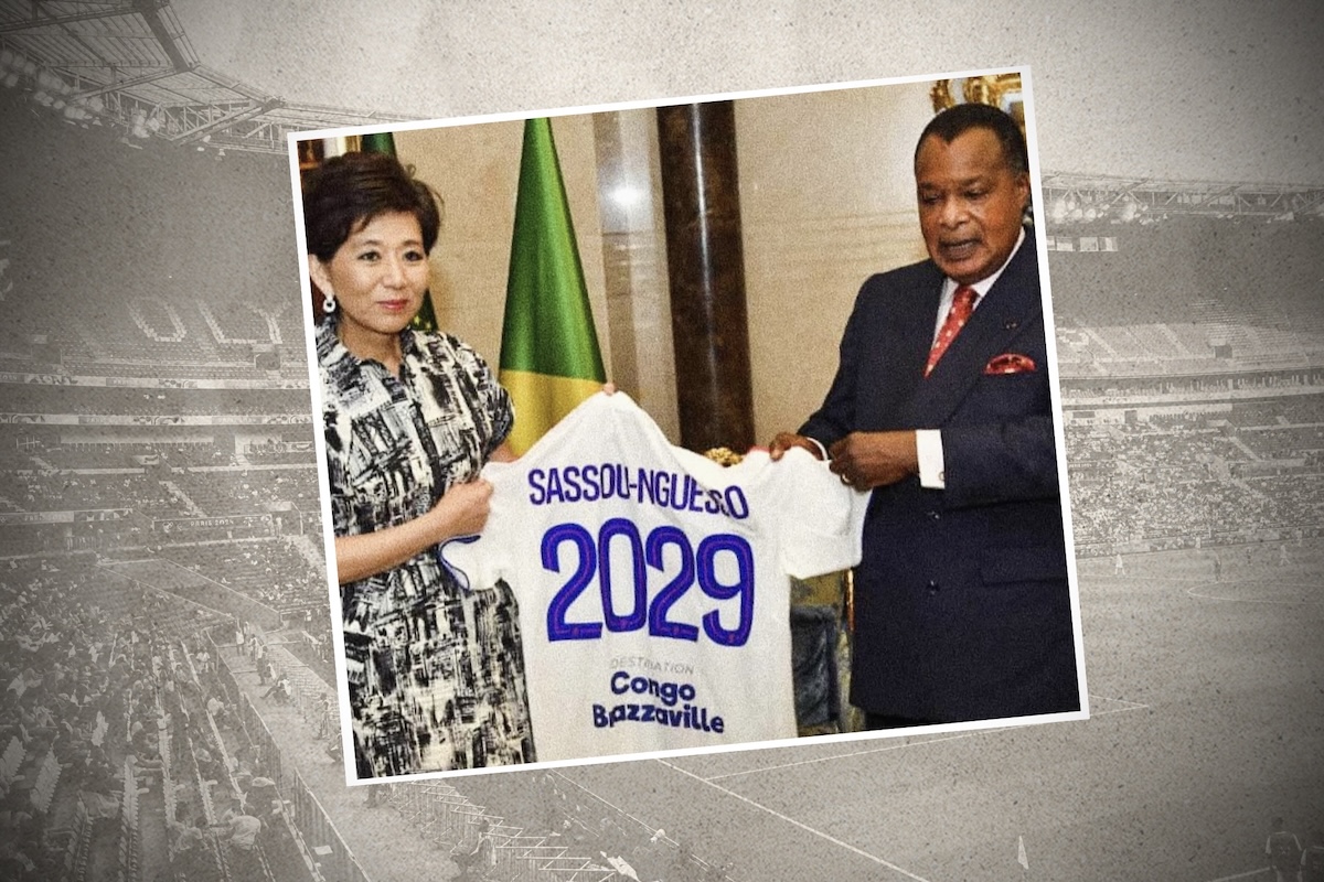 « Sassou‐Nguesso 2029 ». À 82 ans, le président de la République du Congo (ou « Congo‐Brazzaville ») n’est pas l’une des recrues surprises du mercato estival de l’Olympique lyonnais. En ce 31 juillet 2025, son nom et la date de fin de contrat sont pourtant bien floqués au dos d’un maillot officiel du club. Denis Sassou‐Nguesso, au pouvoir depuis plus de quarante ans et qui briguera très probablement sa succession en 2026, l’arbore fièrement devant les photographes, aux côtés de Michele Kang, la nouvelle présidente de l’OL.