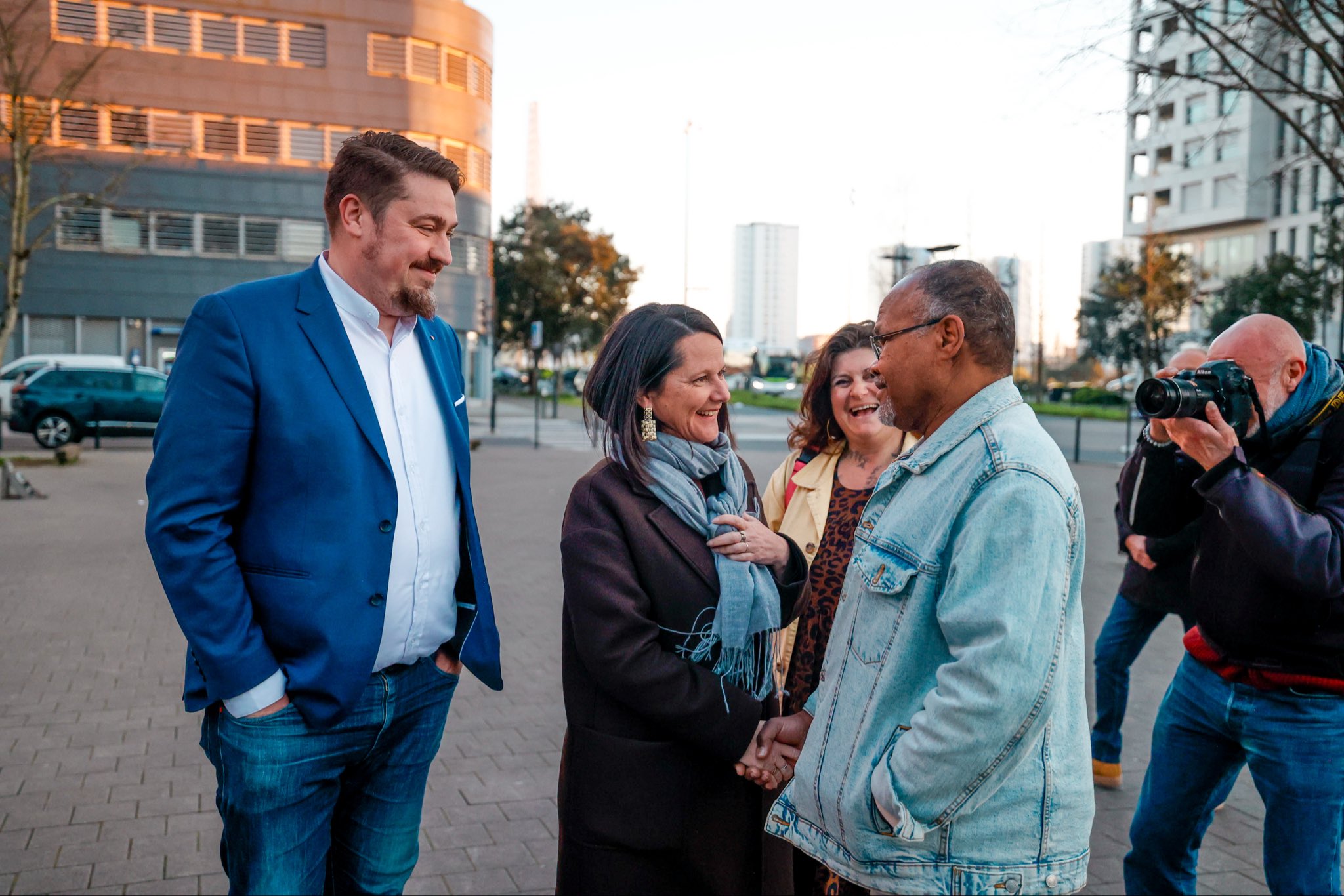 Johanna Rolland, en campagne entre les deux tours des municipales à Malakoff avec William Aucant (LFI). Photo : compte X de William Aucant.