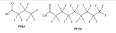 - Par exemple, l’acide perfluorobutanoïque (PFBA), qui contient une chaîne de quatre atomes de carbones, est plus mobile que l’acide perfluorononanoïque (PFNA), qui a une chaîne de neuf atome de carbone.